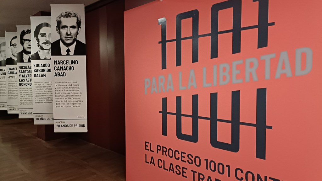 La exposición, comisariada por Carme Molinero, catedrática de Historia Contemporánea en la Universidad Autònoma de Barcelona (UAB) y Especialista en la historia social y política del periodo franquista y la transición de la dictadura a la democracia, es amplia y pone el foco en varios aspectos, desde el contexto en el que tuvieron lugar esas detenciones, marcado por la movilización social y la represión, con un incremento de las huelgas, protestas laborales, estudiantiles, vecinales… Hasta el desarrollo del juicio y los 162 años de condena totales, destacando el importante papel de las mujeres del Proceso 1001, hijas, hermanas y esposas que no descansaron en la reclamación de la libertad para los encausados y una amnistía general para los presos políticos.