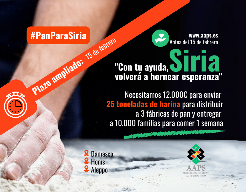 Actualmente, mientras adaptan su trabajo a la nueva situación post-al Assad, tienen en marcha la campaña #PanparaSiria, que tiene como objetivo enviar 25 toneladas de harina que permitirán alimentar durante una semana a 10.000 familias sirias. Ya que, aunque las fábricas de pan están listas para trabajar, la falta de harina está impidiendo alimentar a miles de familias.