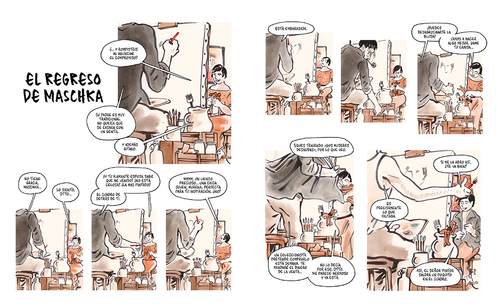 Todo lo que vemos en esta novela gráfica está contado desde el punto de vista de ese cuadro. Desde el estudio del artista hasta las paredes de la oficina de su primer propietario, la pintura observa la vida cotidiana antes de ser arrastrada por las tribulaciones de este periodo oscuro: el ascenso de Hitler al poder, el arte moderno calificado de «degenerado» por los nazis, el expolio de las familias judías, exposiciones y ventas, incendios…